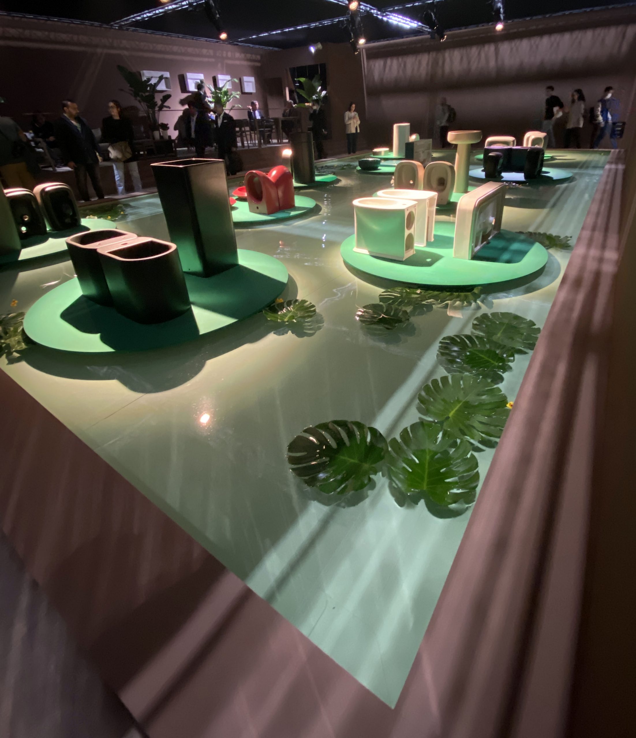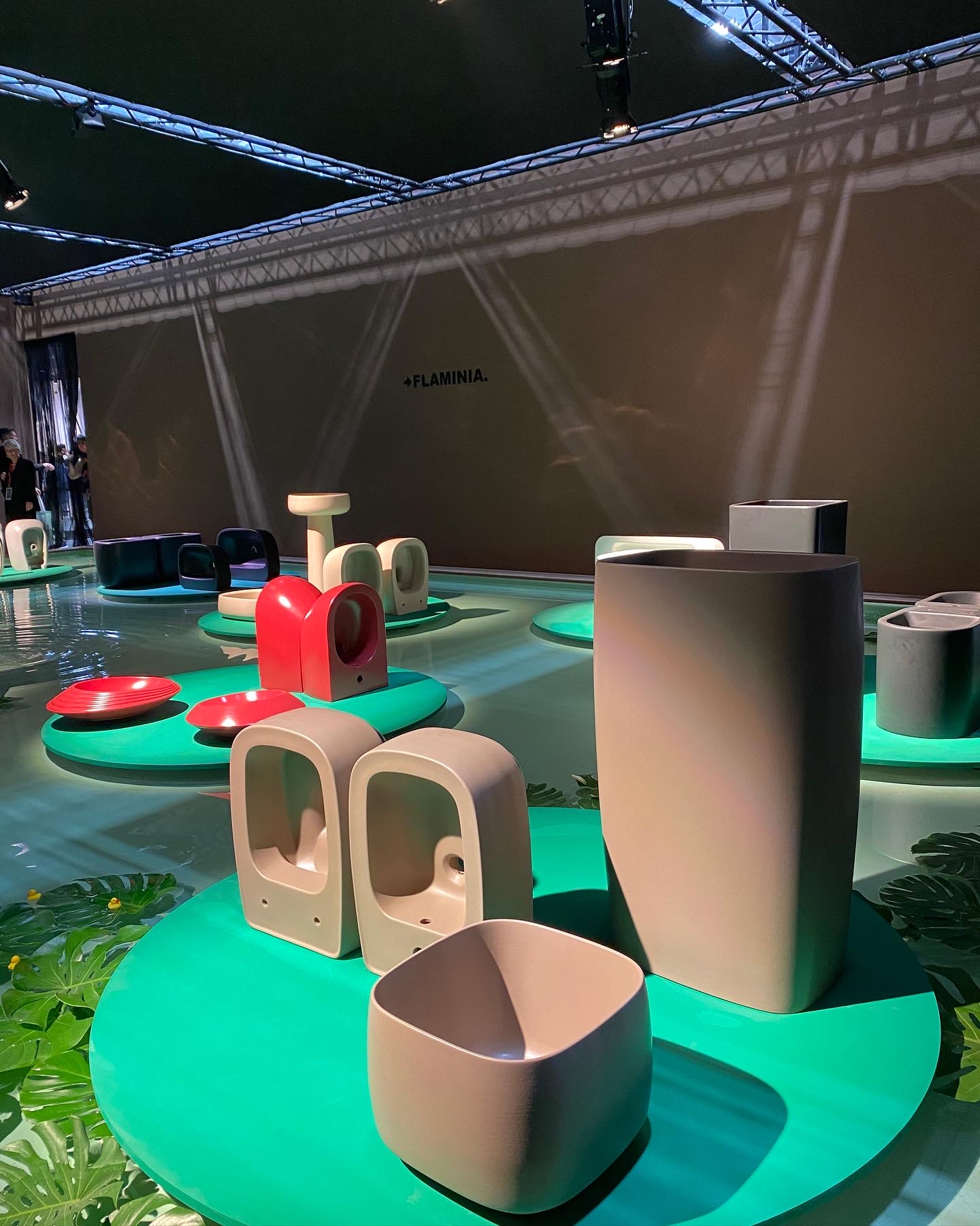 Con la volontà di intraprendere sempre nuove direzioni creative, l’azienda invita i visitatori in uno spazio immersivo: «LAKE FLAMINIA», concepito da Giulio Cappellini. Un luogo d’ispirazione naturale, un ecosistema emozionale con un forte impatto scenografico che ha l’intento di coinvolgere lo spettatore in una visita multisensoriale totalizzante. Su un ampio bacino d’acqua trovano posto una serie di pedane rotonde, che ricordano grandi foglie tropicali galleggianti, sulle quali sono esposte le diverse collezioni.