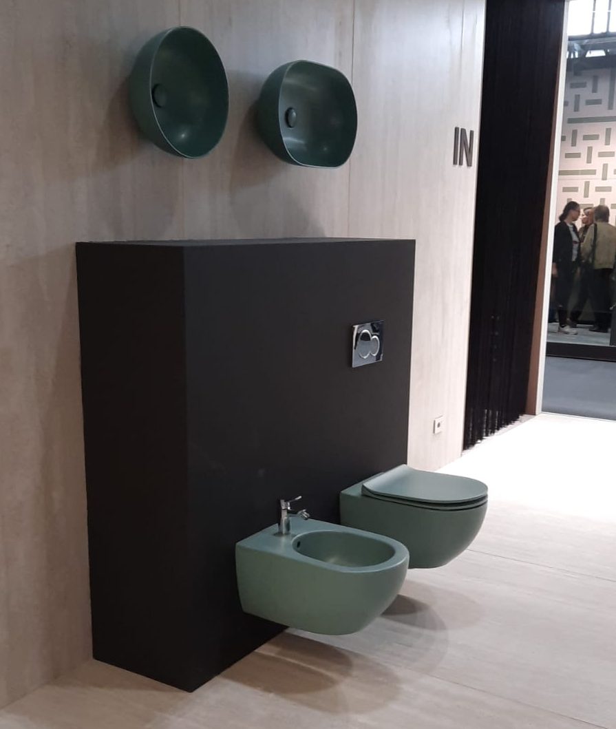 Lo spazio, suddiviso in due aree: una emozionale e l’altra commerciale per declinare tutte le sfaccettature del mondo Flaminia, si apre con le più recenti collezioni del marchio dalle finiture inedite e i colori contemporanei come Uva e Menta, ispirati ai toni avvolgenti della natura. Firmati da Elena Salmistraro, i lavabi Spire e Spire+ sono tra i protagonisti di questo momento storico del brand, sintesi tra l’universo creativo della designer e l’esperienza produttiva di Flaminia. Tra le ultime collezioni, si fanno notare gli eleganti e monolitici sanitari Astra, disegnati da Giulio Cappellini, ma anche le linee organiche di Fluo di Niccolò Adolini e i volumi importanti di Flag di Alessio Pinto.
