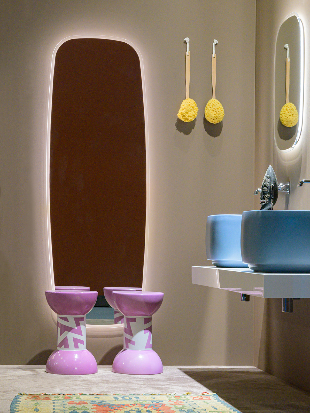Da un sofisticato gioco di contrasti nasce la collezione Flag. I volumi importanti si impreziosiscono incontrando dettagli sottili che ne disegnano il profilo; le forme monolitiche si alleggeriscono nei cambi di sezione che smussano gli angoli. Una forma essenziale ma ricca di particolari emozionali. Questa collezione, in particolare, indaga il tema del colore, conferendo alle cromie un ruolo di rilievo nell’esperienza progettuale.