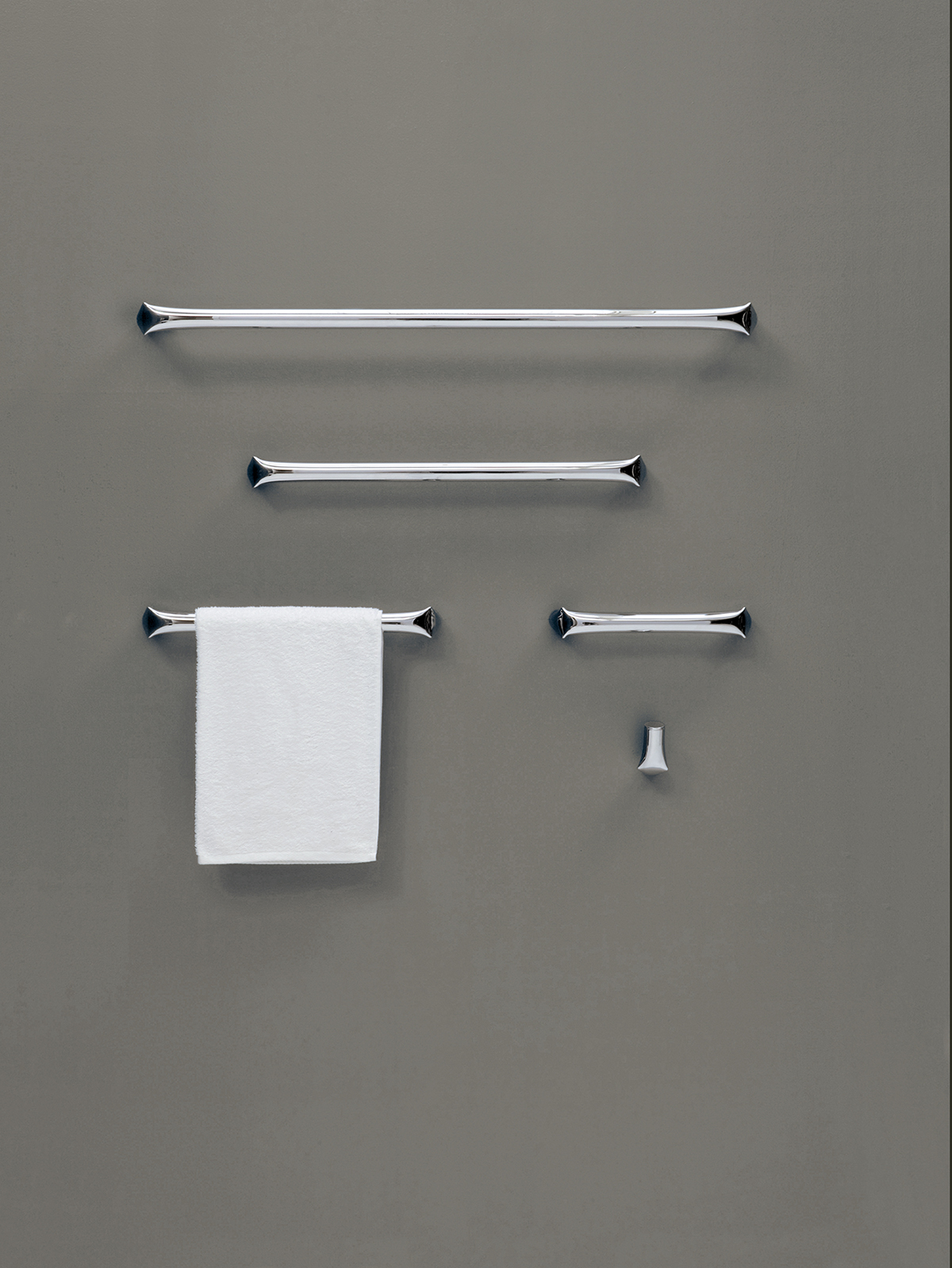 Fold è la collezione di rubinetti ed accessori da bagno in tubolare cromato, prodotto mediante piegatura meccanica da cui ne deriva un profilo schiacciato, dettaglio determinante per l’intera collezione.
