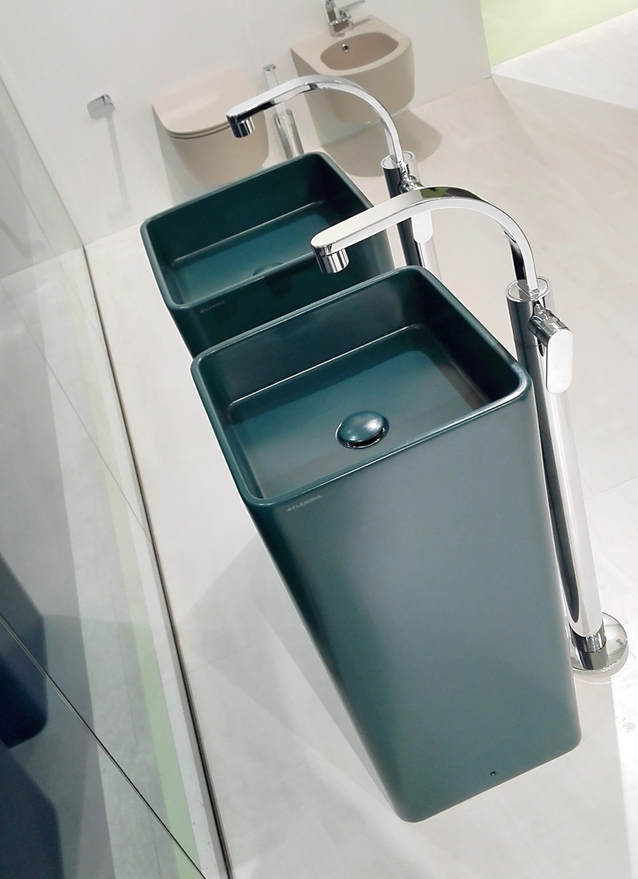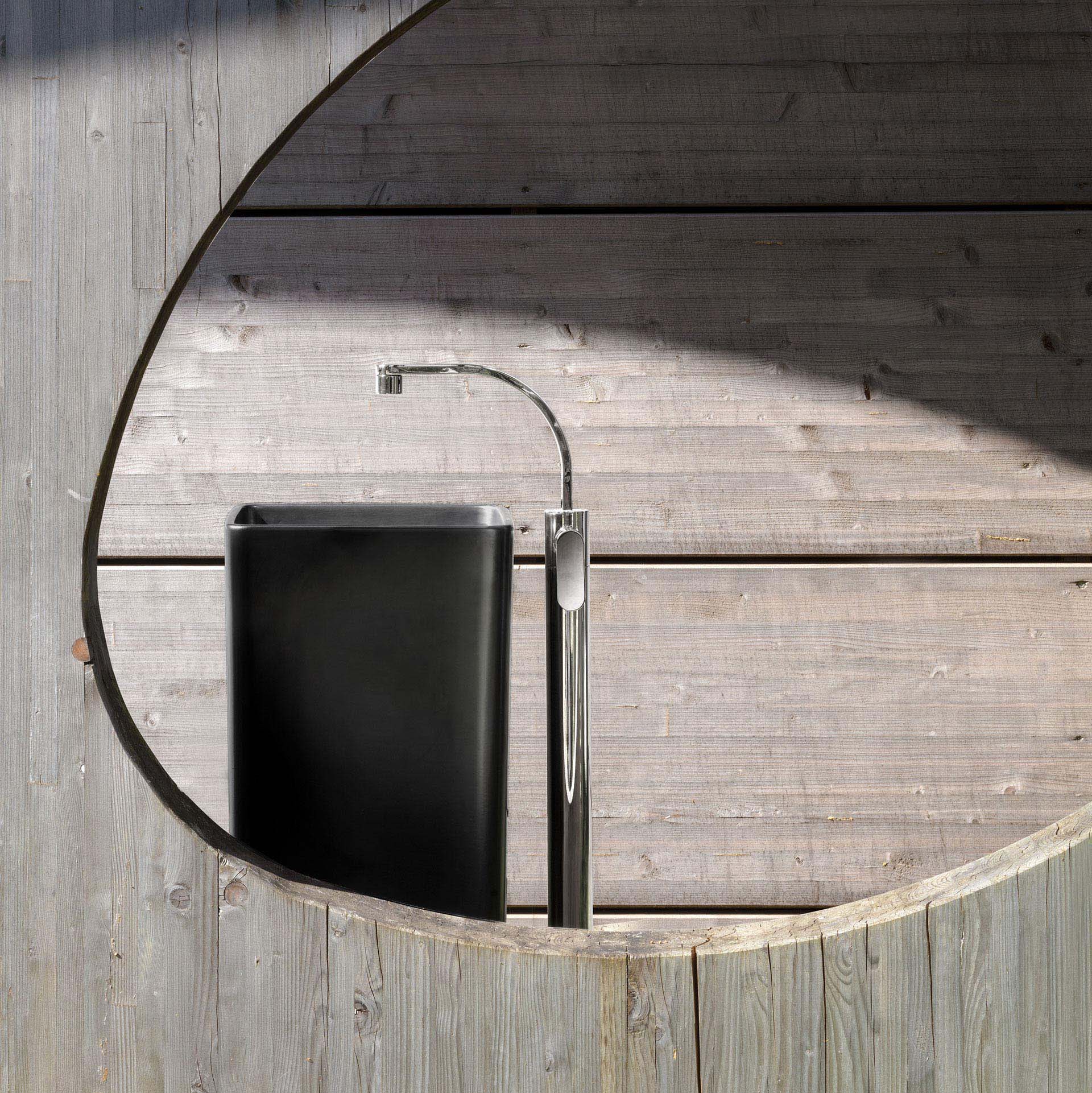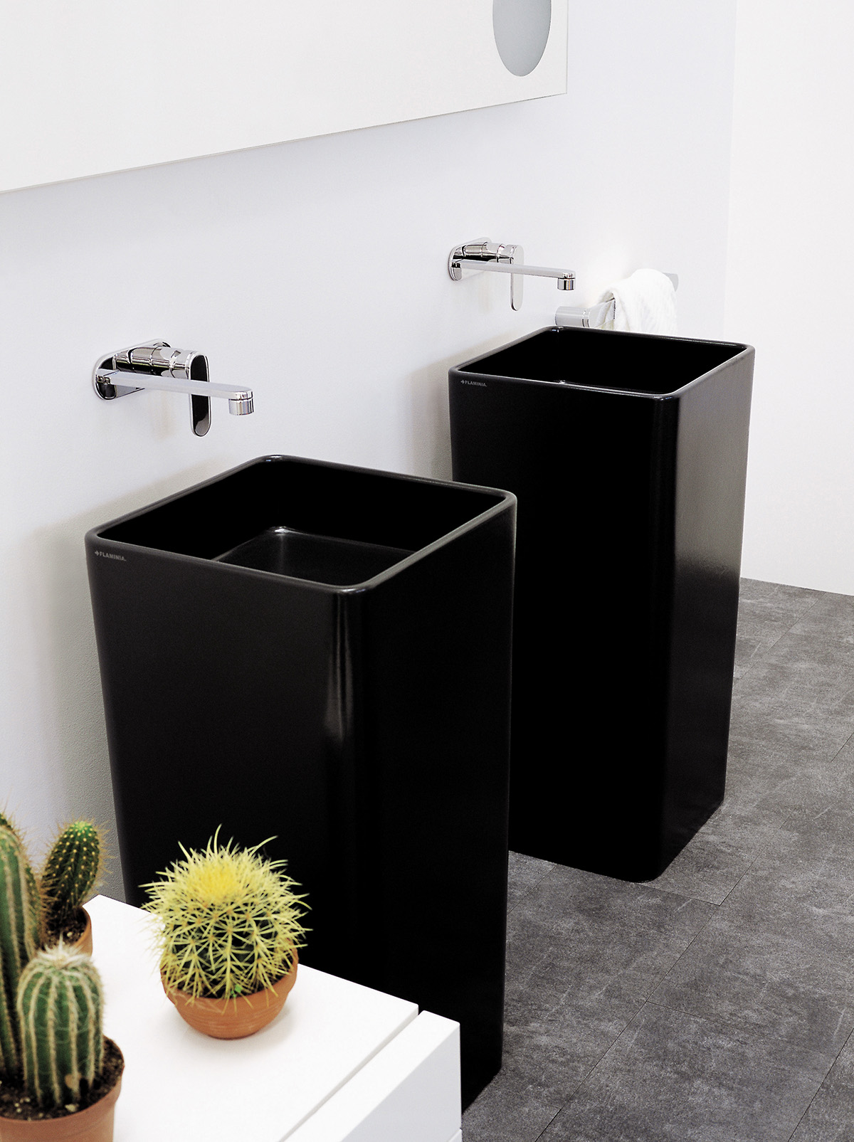 Monowash è un lavabo a colonna realizzato in un unico blocco di ceramica. La forma della vasca, quadrata con angoli smussati, e della colonna, leggermente ristretta verso il basso, ne fanno un elemento dalla geometria precisa ma dalle forme morbide. Un elemento particolare è lo spessore del materiale, ridotto al minimo per raggiungere il massimo delle possibilità espressive della ceramica.