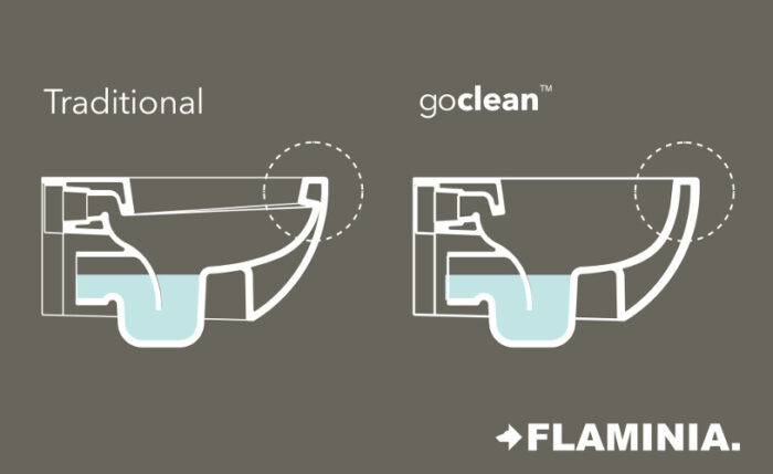 gosilent system makes easier the cleaning of the internal part of the wc and grants maximas hygiene at every flush with a smaller water consumption and, finally, has an original design. But its great innovation is the silence: the reduction of noise using a gosilent wc is about 50% compared to the same model in the goclean version.