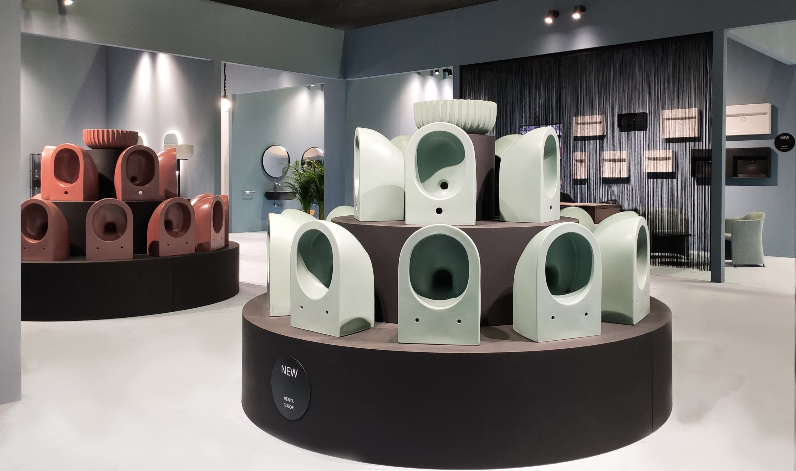 The different environments take you on a journey amidst the brand’s iconic collections and the latest creations, styled by celebrated names of contemporary design. Recent proposals, such as Spire+ by Elena Salmistraro, are presented alongside best sellers, such as Bonola by Jasper Morrison, Roll by Nendo, Flag by Alessio Pinto, Madre by Silvana Angeletti and Daniele Ruzza. A special place is reserved for Giulio Cappellini’s Astra and Niccolò Adolini‘s Fluo collections, which were awarded first prize and special mention, respectively, at the German Design Award 2023, in the Bath & Wellness category.