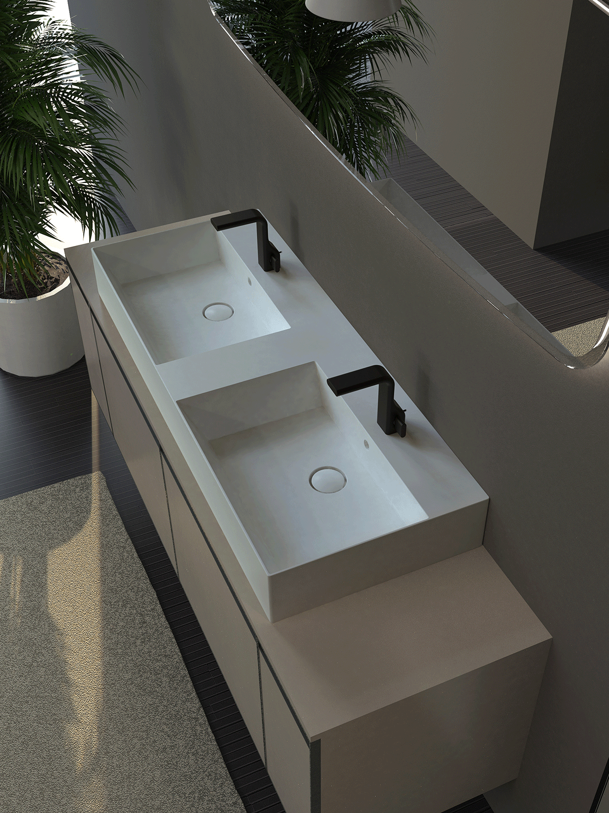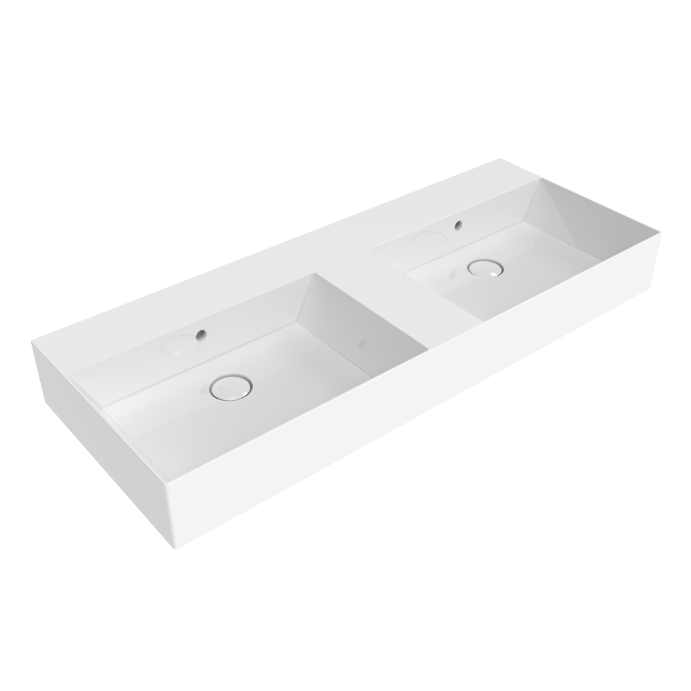 Countertop / wall hung basin 120×47 cm with double basin, tap ledge and overflow.