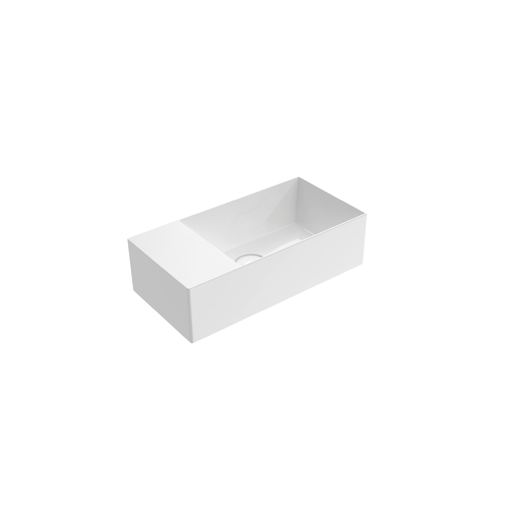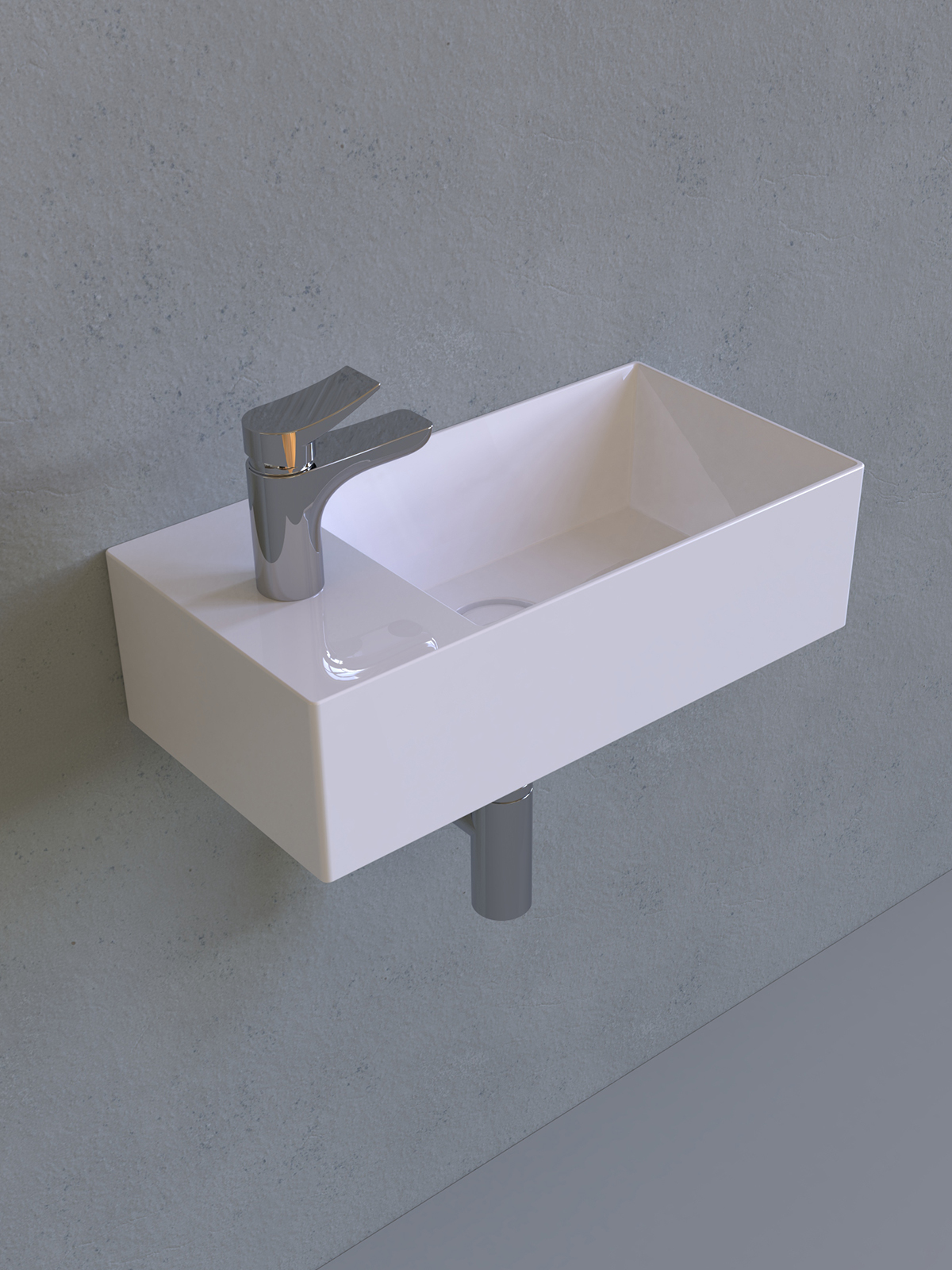 Wall-hung basin 50×25 cm with left tap ledge and without overflow.