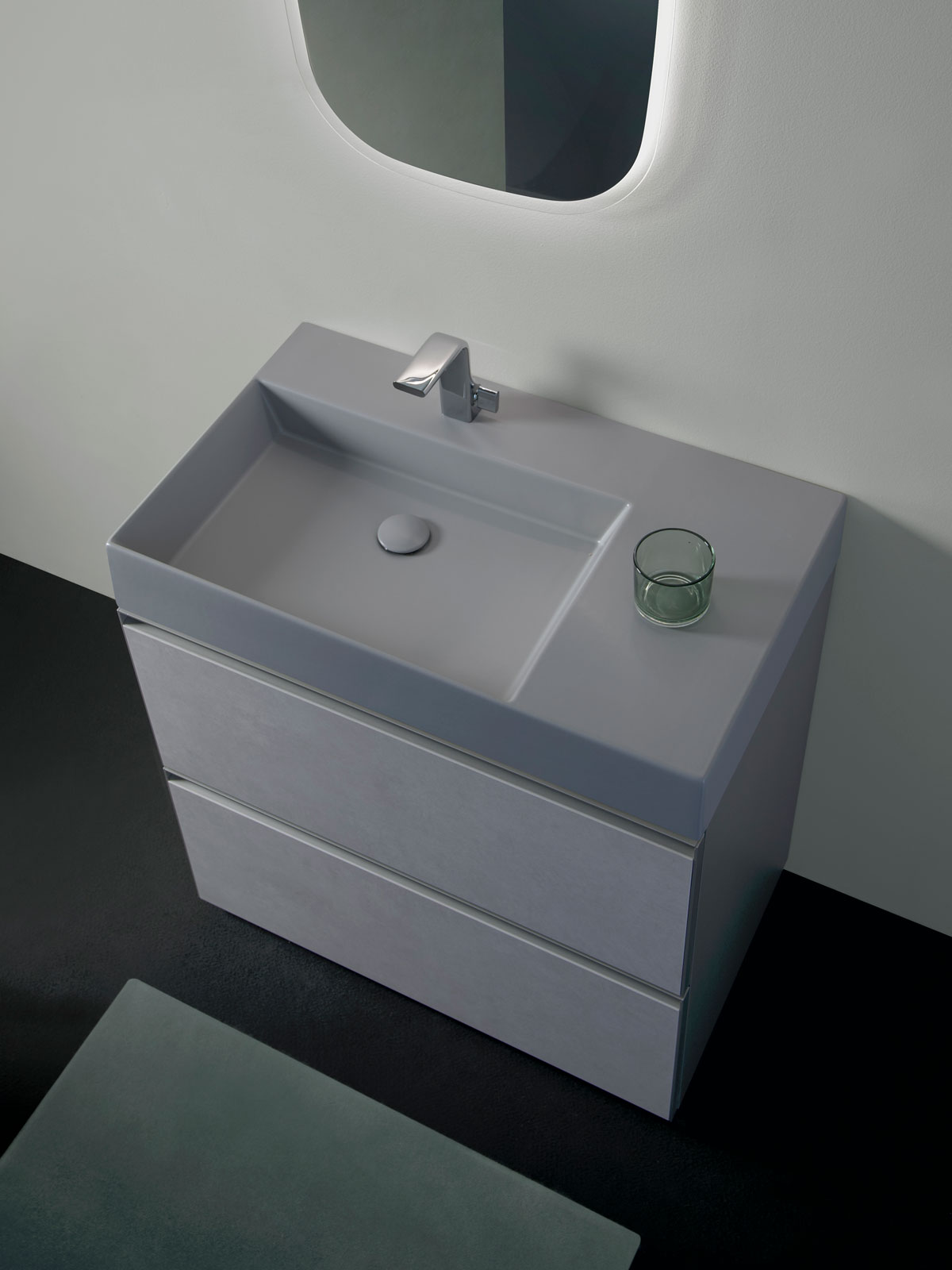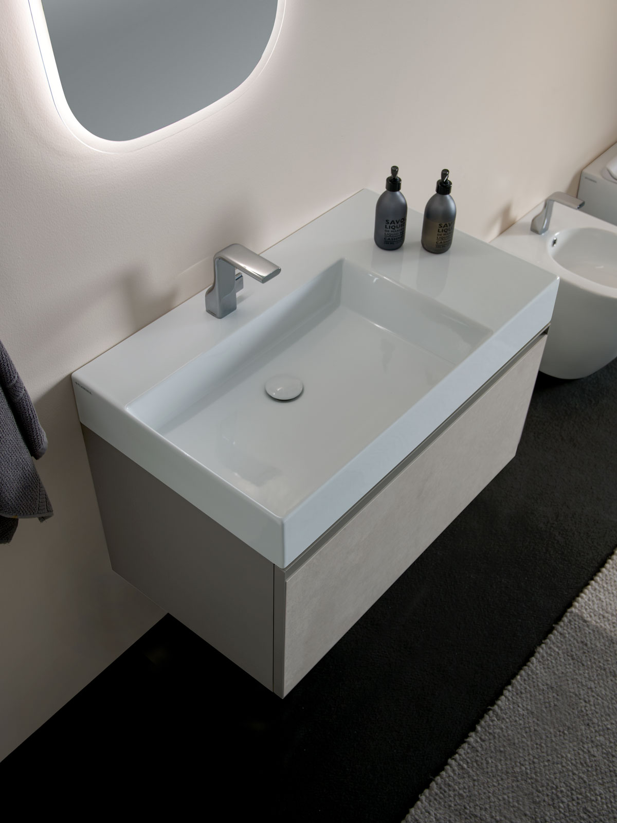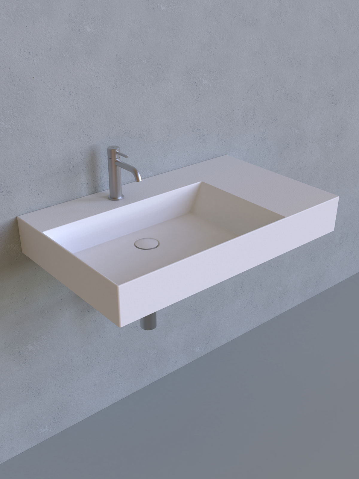 Countertop / wall hung / for vanity unit basin 85×51 cm with tap ledge, without overflow and right ceramic ledge only.