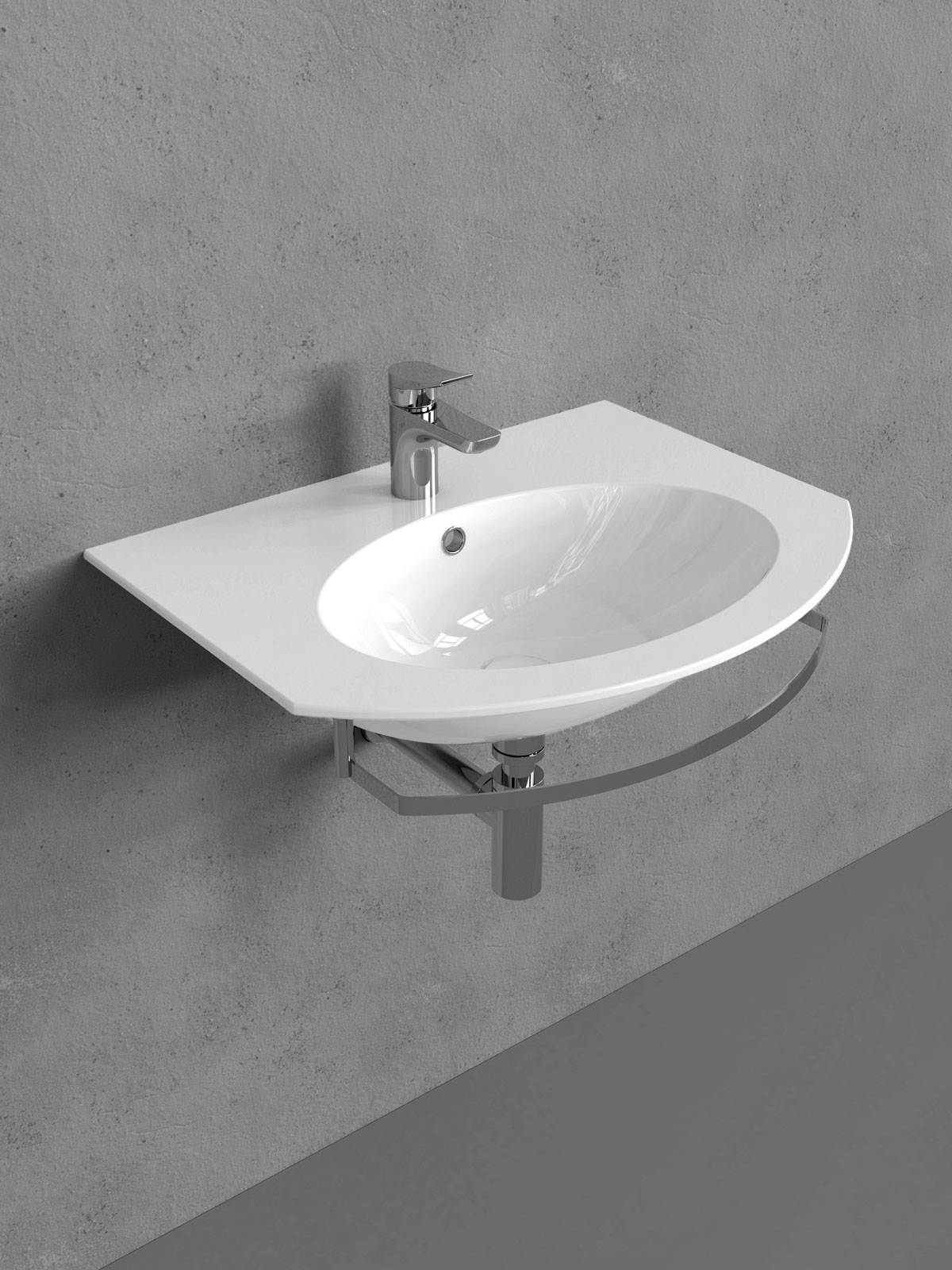 Wall hung basin with overflow. Arranged for three tap-holes.