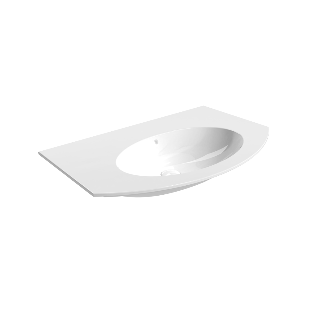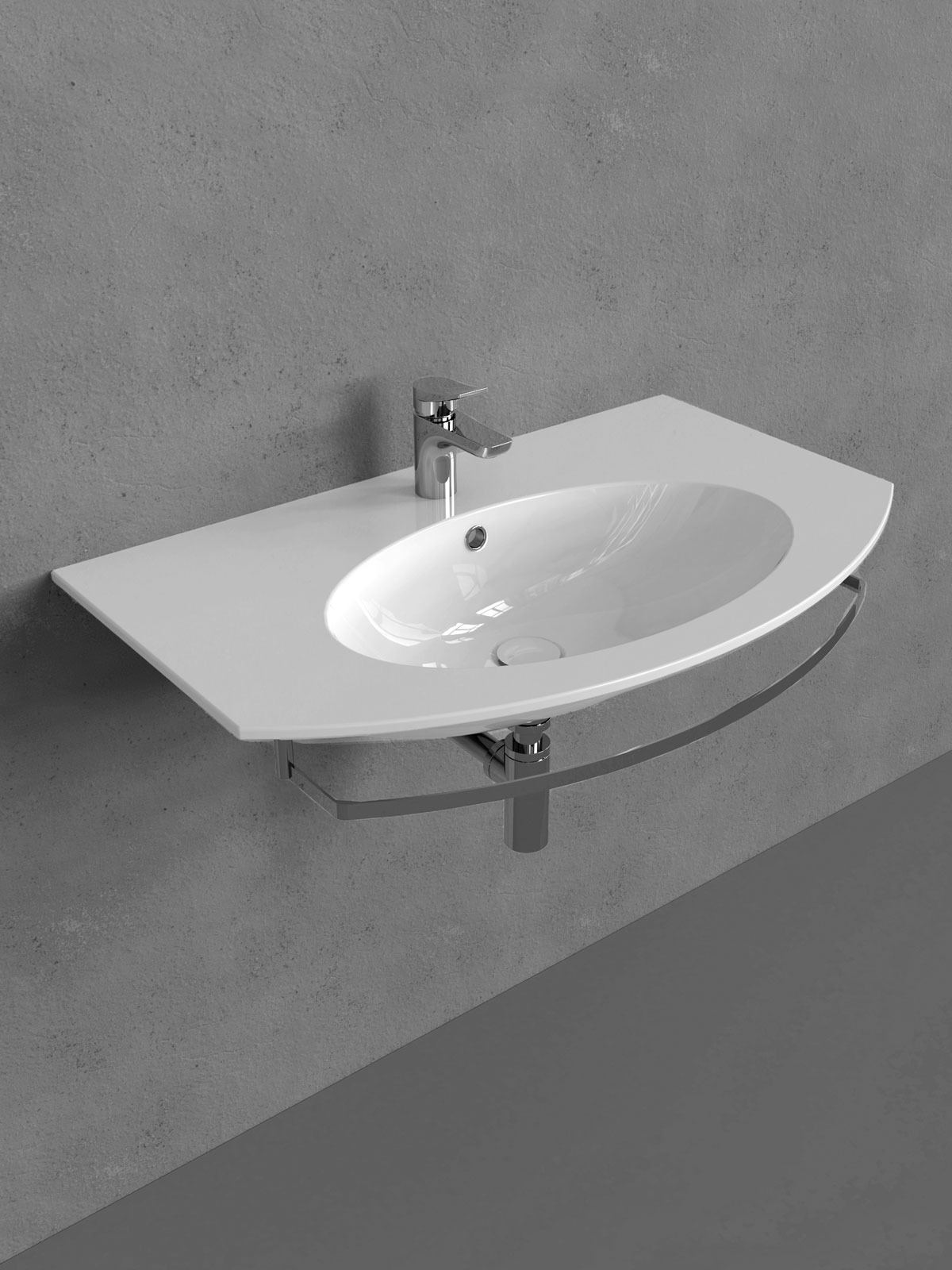 Wall hung basin with overflow. Arranged for three tap-holes.