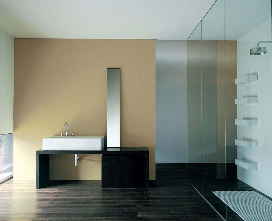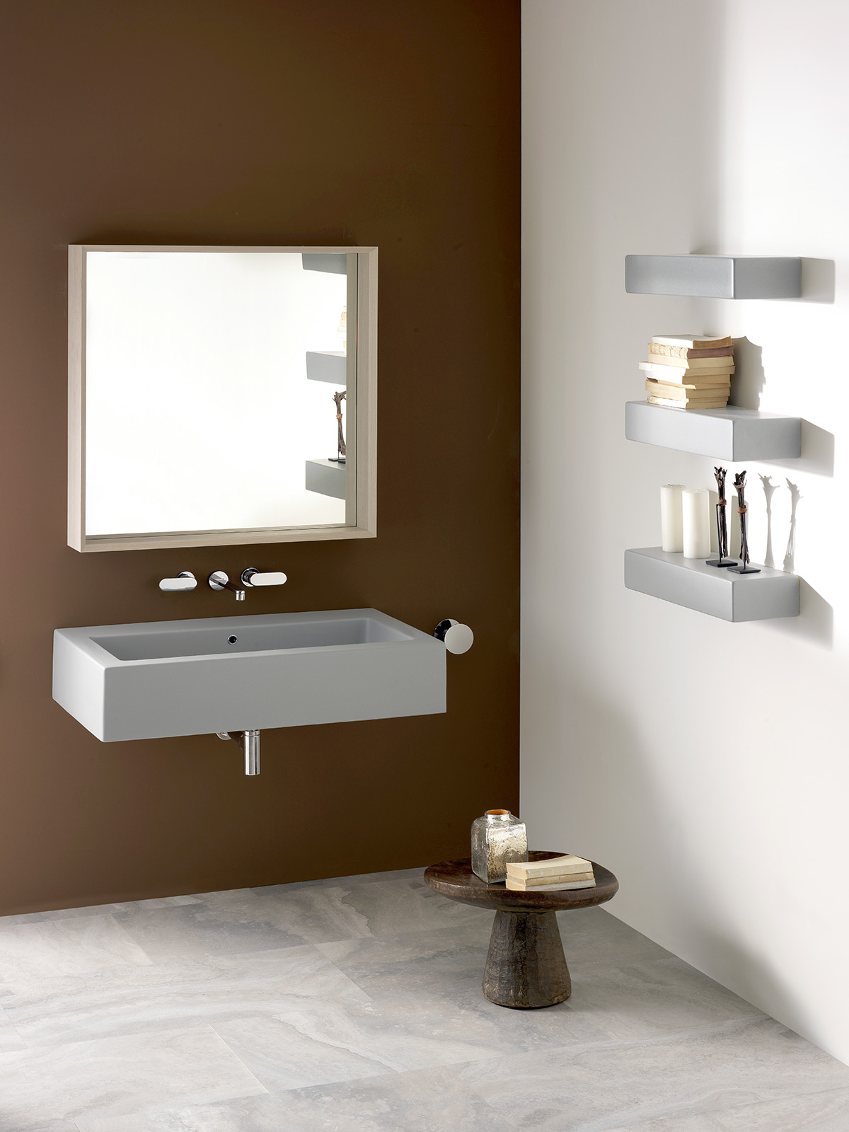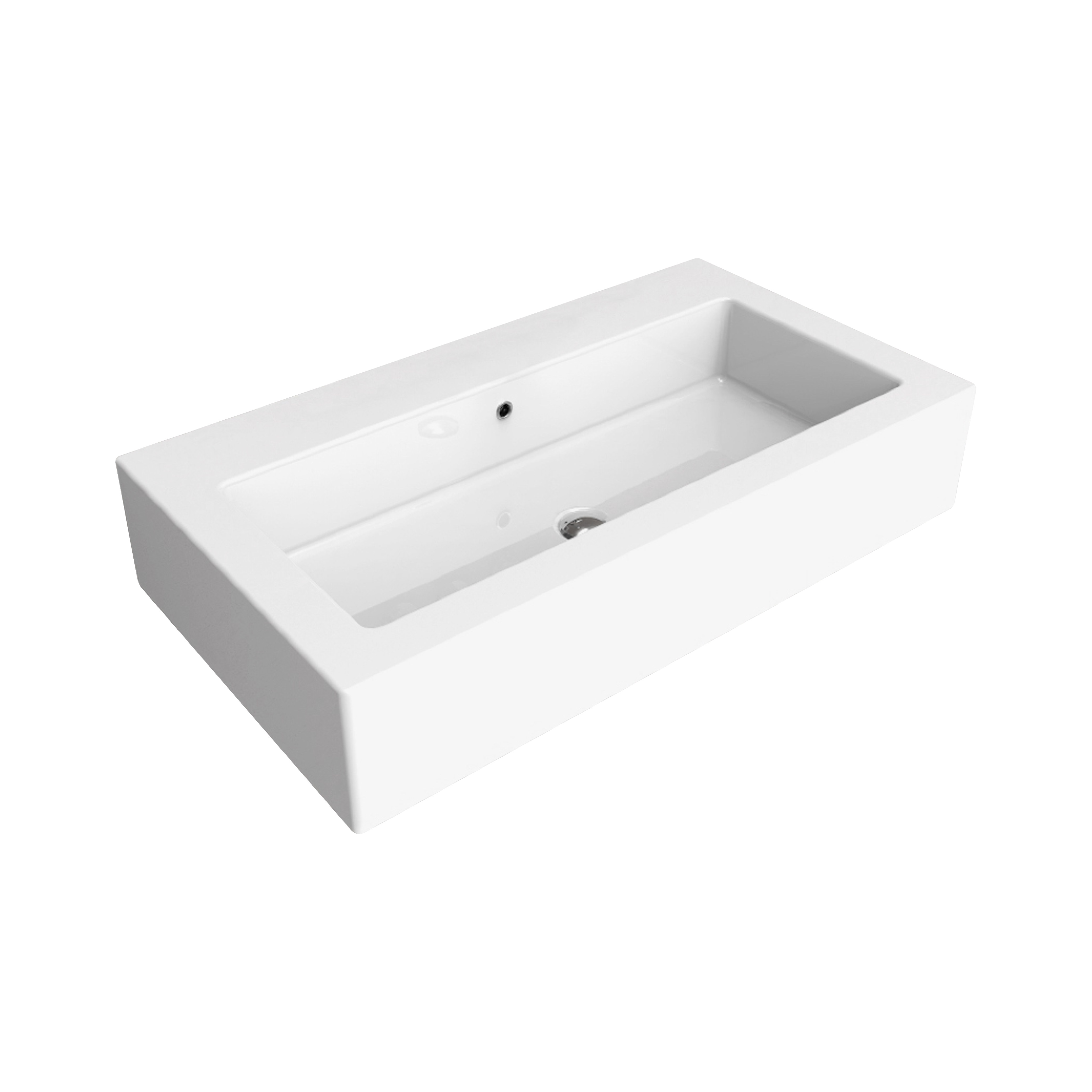 Lavabo cm 100 da appoggio/sospeso, con piano rubinetteria e troppopieno.