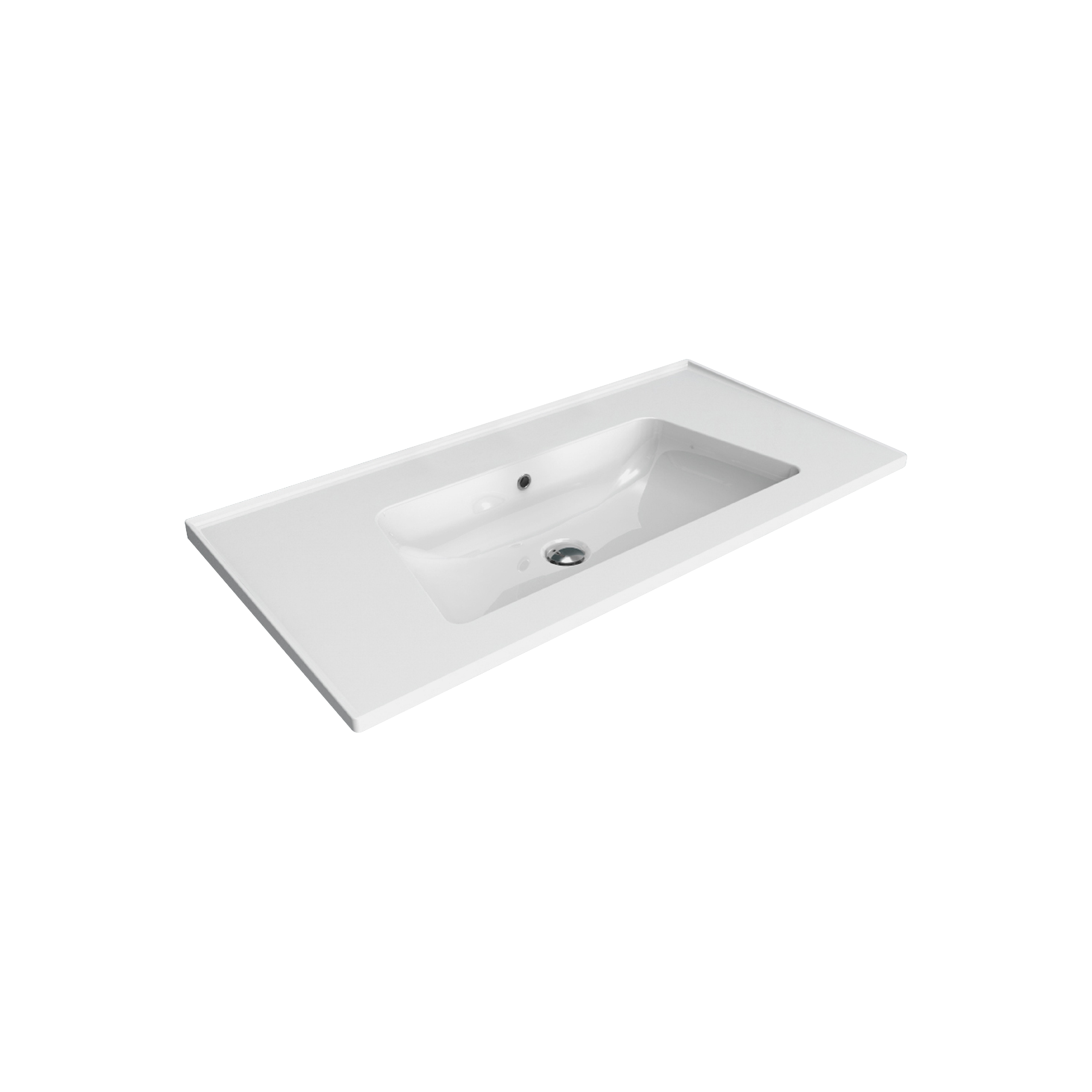 Consolle cm 107 sospesa e da mobile con troppopieno e piano rubinetteria predisposto per tre fori.