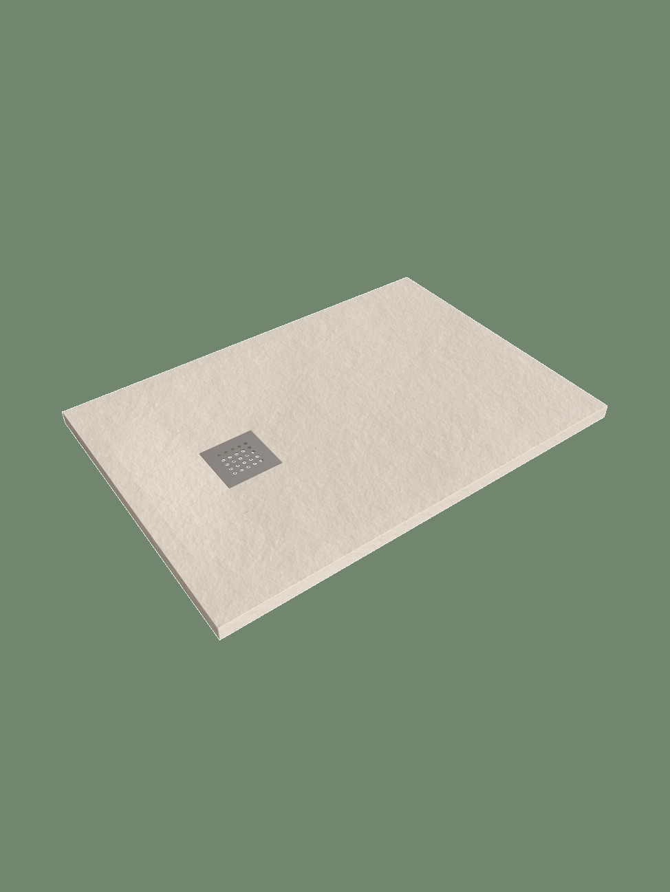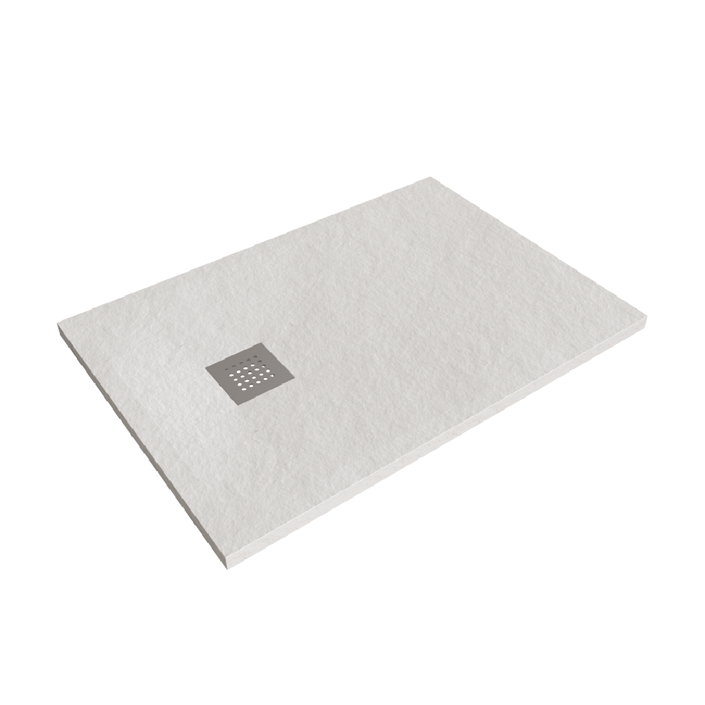 Piatto doccia in ceramica da appoggio/incasso filo pavimento cm 70×100 h3, finitura Stone. Piletta sifonata ø 90 mm con griglia in acciaio inox spazzolato inclusa.