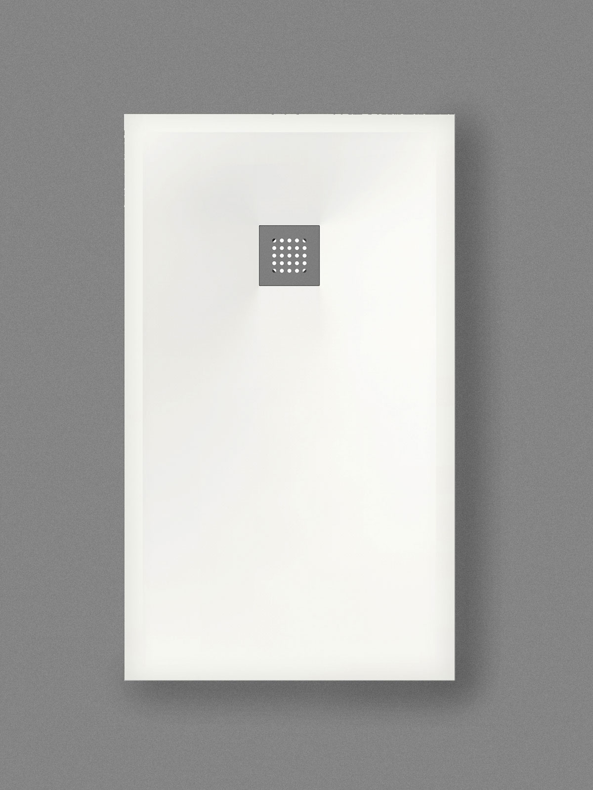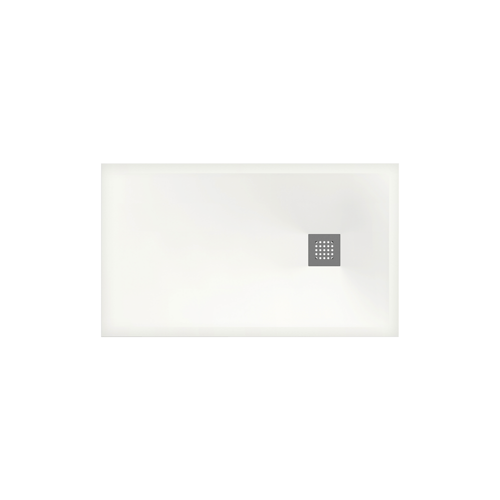 Piatto doccia in ceramica da appoggio/incasso filo pavimento cm 70×120 h3. Piletta sifonata ø 90 mm con griglia in acciaio inox spazzolato inclusa.