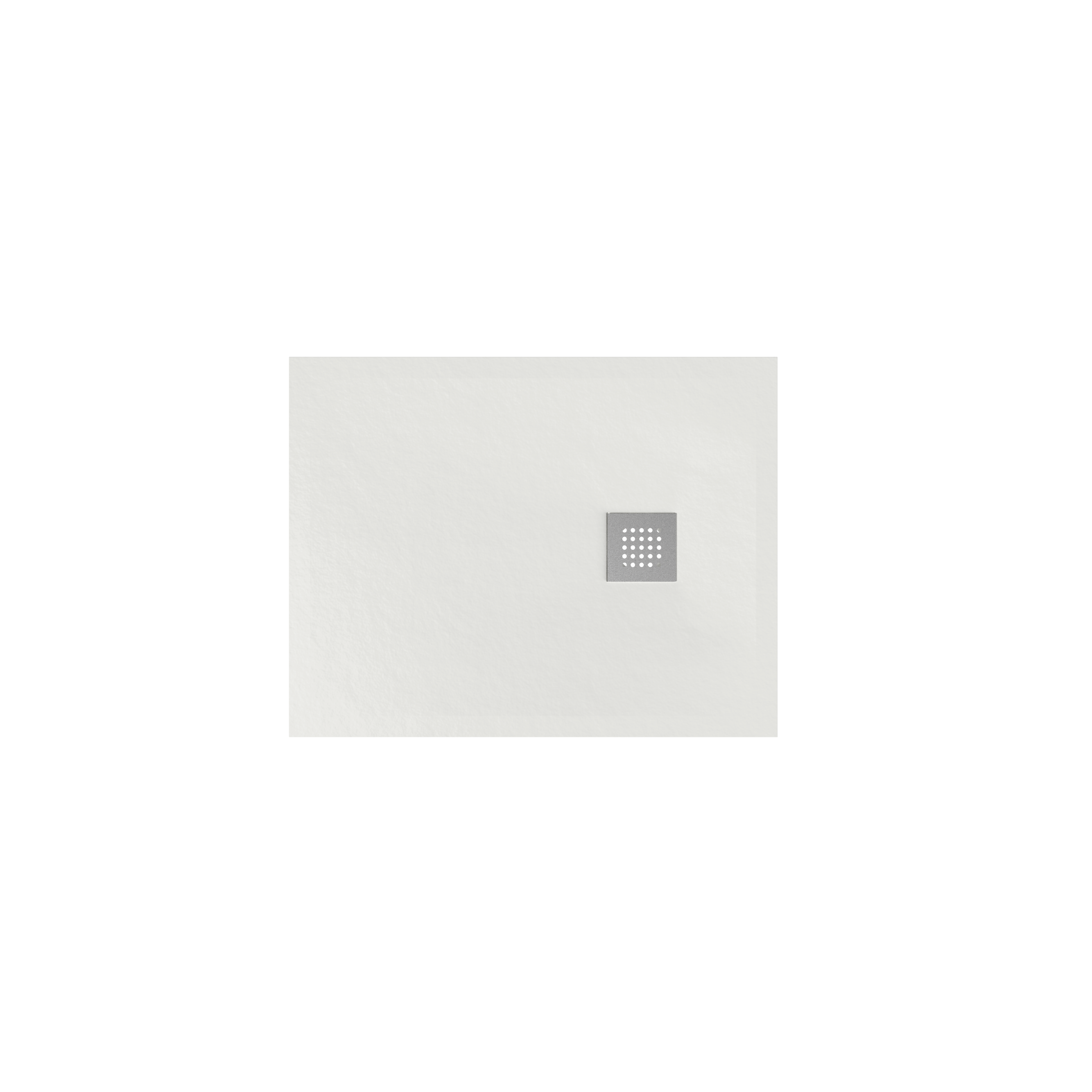 Piatto doccia in ceramica da appoggio/incasso filo pavimento cm 70×90 h3. Piletta sifonata ø 90 mm con griglia in acciaio inox spazzolato inclusa.