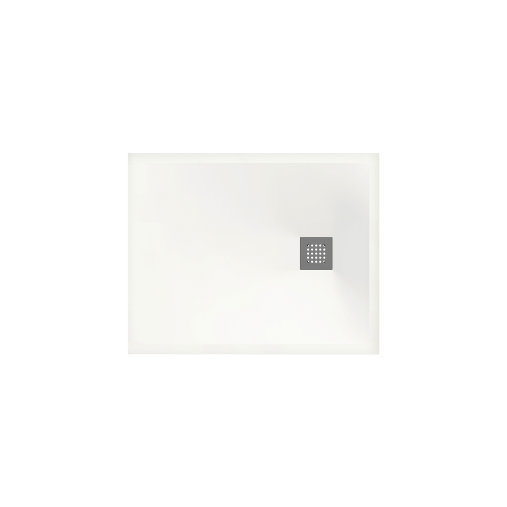 Piatto doccia in ceramica da appoggio/incasso filo pavimento cm 80×100 h3. Piletta sifonata ø 90 mm con griglia in acciaio inox spazzolato inclusa.