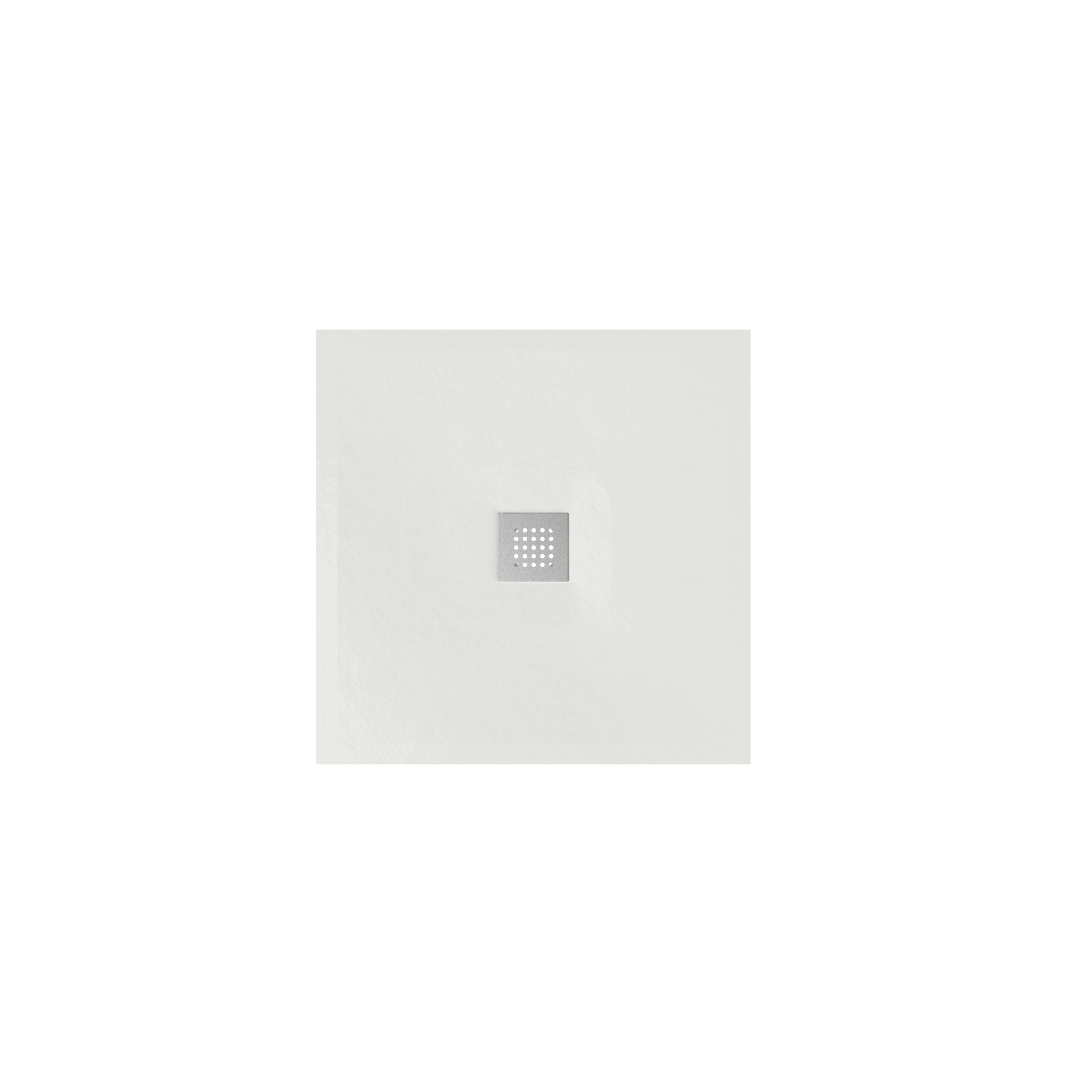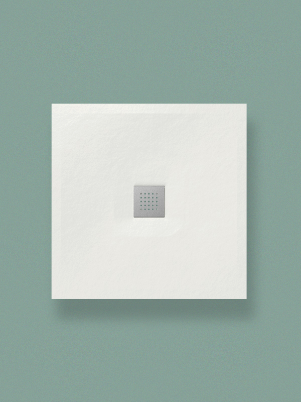 Piatto doccia in ceramica da appoggio/incasso filo pavimento cm 80×80 h3. Piletta sifonata ø 90 mm con griglia in acciaio inox spazzolato inclusa.