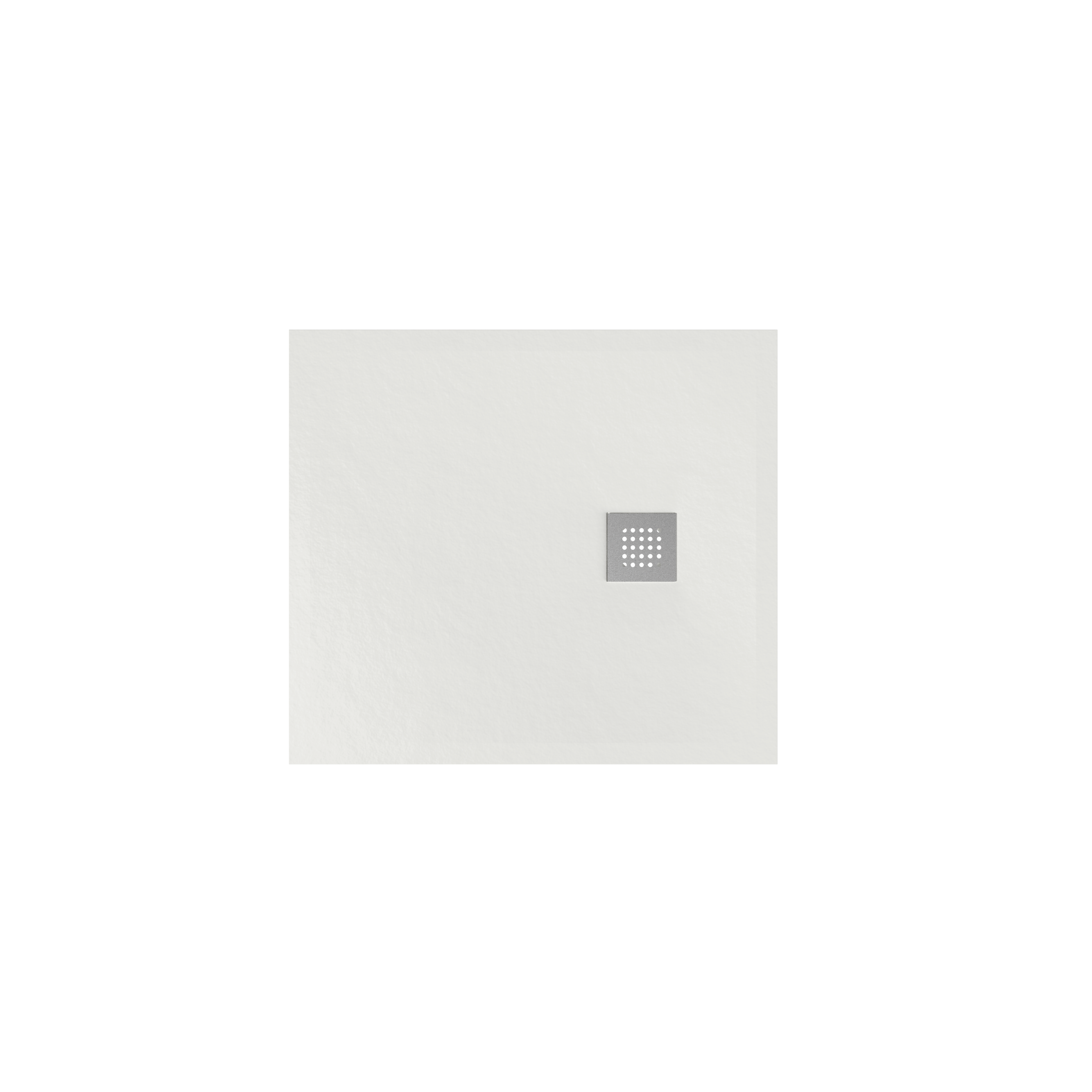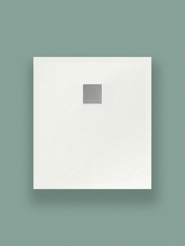 Piatto doccia in ceramica da appoggio/incasso filo pavimento cm 80×90 h3. Piletta sifonata ø 90 mm con griglia in acciaio inox spazzolato inclusa.