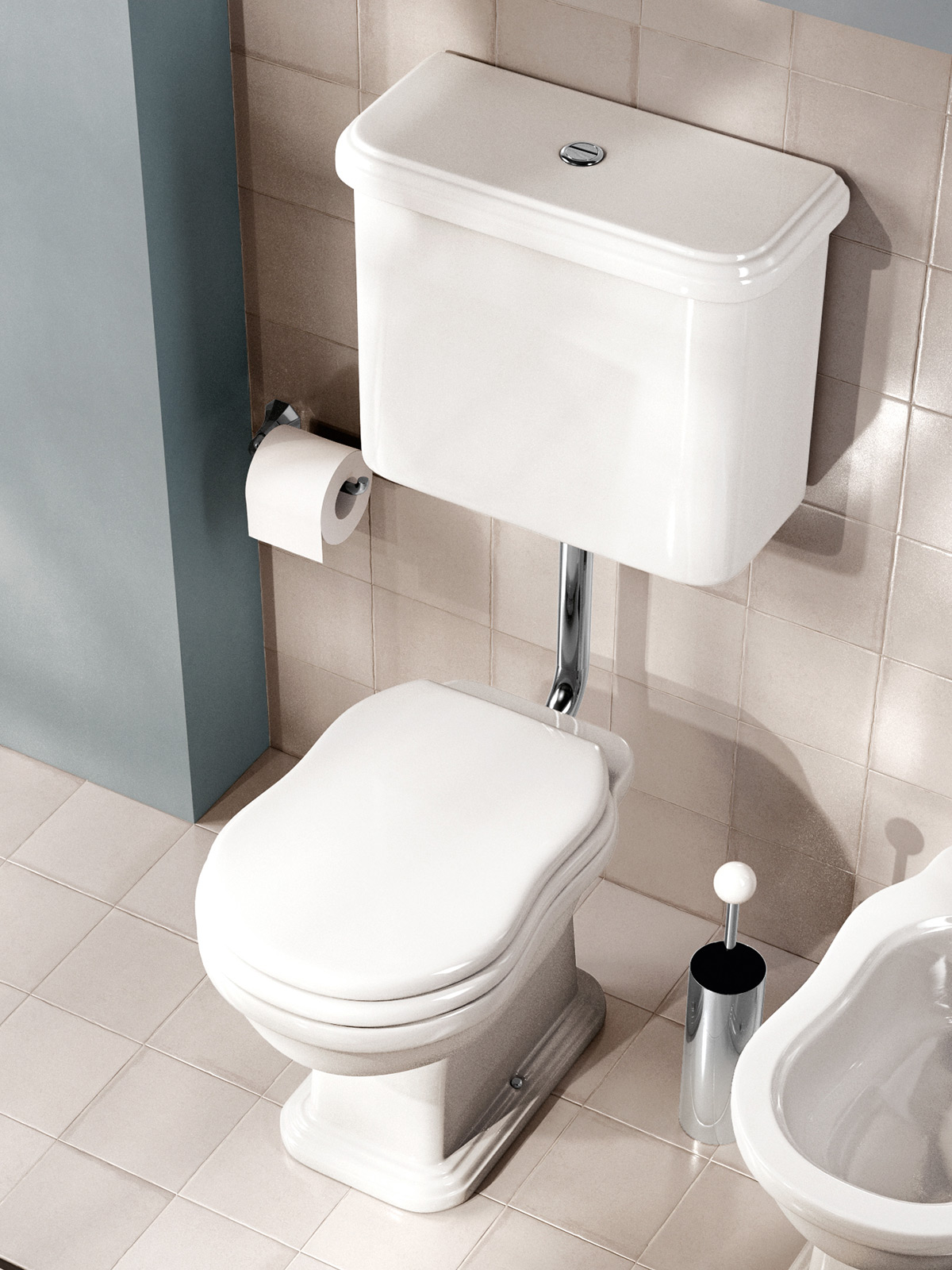 Cassetta di scarico a zaino in ceramica completa di coperchio, batteria doppio flusso art. 9102 esclusa.